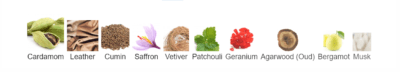| ingredients | Agarwood (Oud), Bergamot, Cardamom, Cumin, Geranium, Leather, Musk, Patchouli, Saffron, Vetiver |