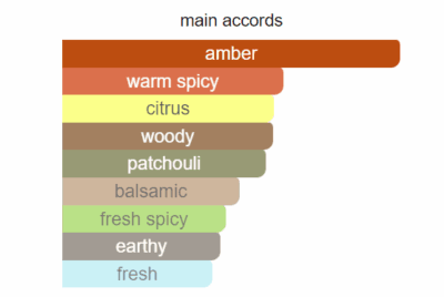 Benzoin ,Bitter Orange ,Citruses ,Jasmine ,Labdanum ,Neroli ,Olibanum ,Orris Root ,Patchouli ,Rose |